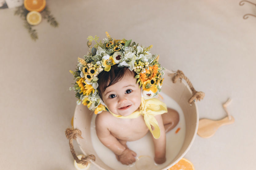 Complementa tu sesión smashcake con un baño de leche y frutas y sumérgete en un recuerdo único.
